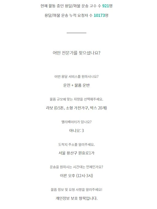 그래서 이전에 이용경험이 있던 숨고에서 이사를 알아봤습니다. 숨고는 채팅을 할 수도 있고 전화로 업체에게 상담을 받을 수도 있어서 컨택이 자유로운 느낌을 받았어요.