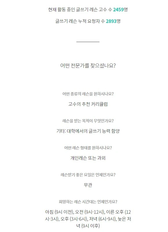이전에는 글쓰기를 따로 배워야겠다는 생각은 하지 않았어요. 하지만 우연히 구글 플레이 스토어에서 숨고가 추천 앱으로 노출이 되었고 이를 통해 글쓰기 레슨을 요청하게 되었죠.
