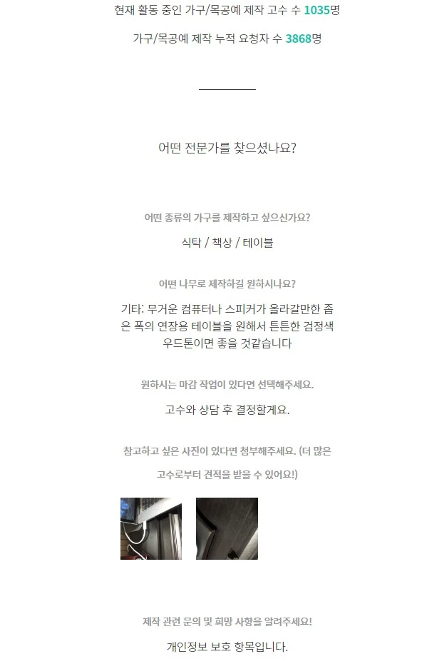 제가 원했던 높이, 길이, 색깔의 테이블을 제작해주셨어요