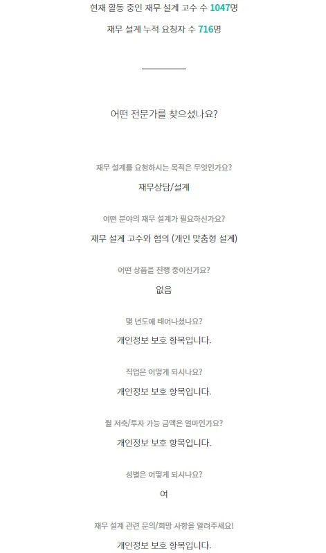 이전에는 무료 재무설계를 몇번 받아본 적이 있었어요. 하지만 무료라 그런지 한 번 상담하고 나서는 컨택이 잘 이어지지 않았습니다. 그런 부분이 아쉽다는 생각이 들었어요.