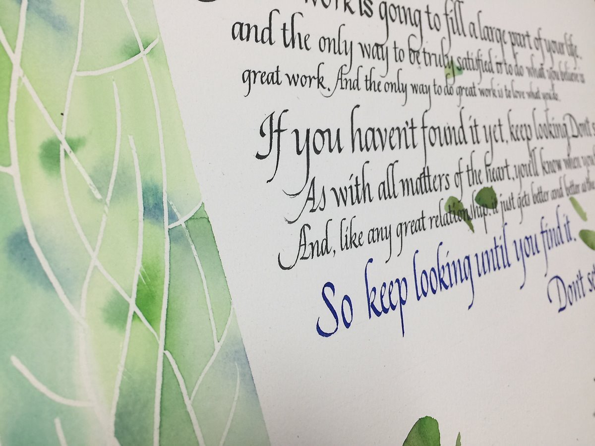 이러한 정밀함이 영문 캘리그라피가 가진 큰 매력 중 하나이지만, 한편으로는 기계적이고 딱딱하게 느껴질 수 있다고 생각합니다. 저는 각 서체가 가진 형식을 벗어나지 않으면서 가능한 손글씨의 느낌을 살려서 쓰려고 노력하는 편이에요. 아무리 많은 부분이 정해져 있어도 사람이 손으로 쓰다 보니 작가마다 글씨가 다르거든요.