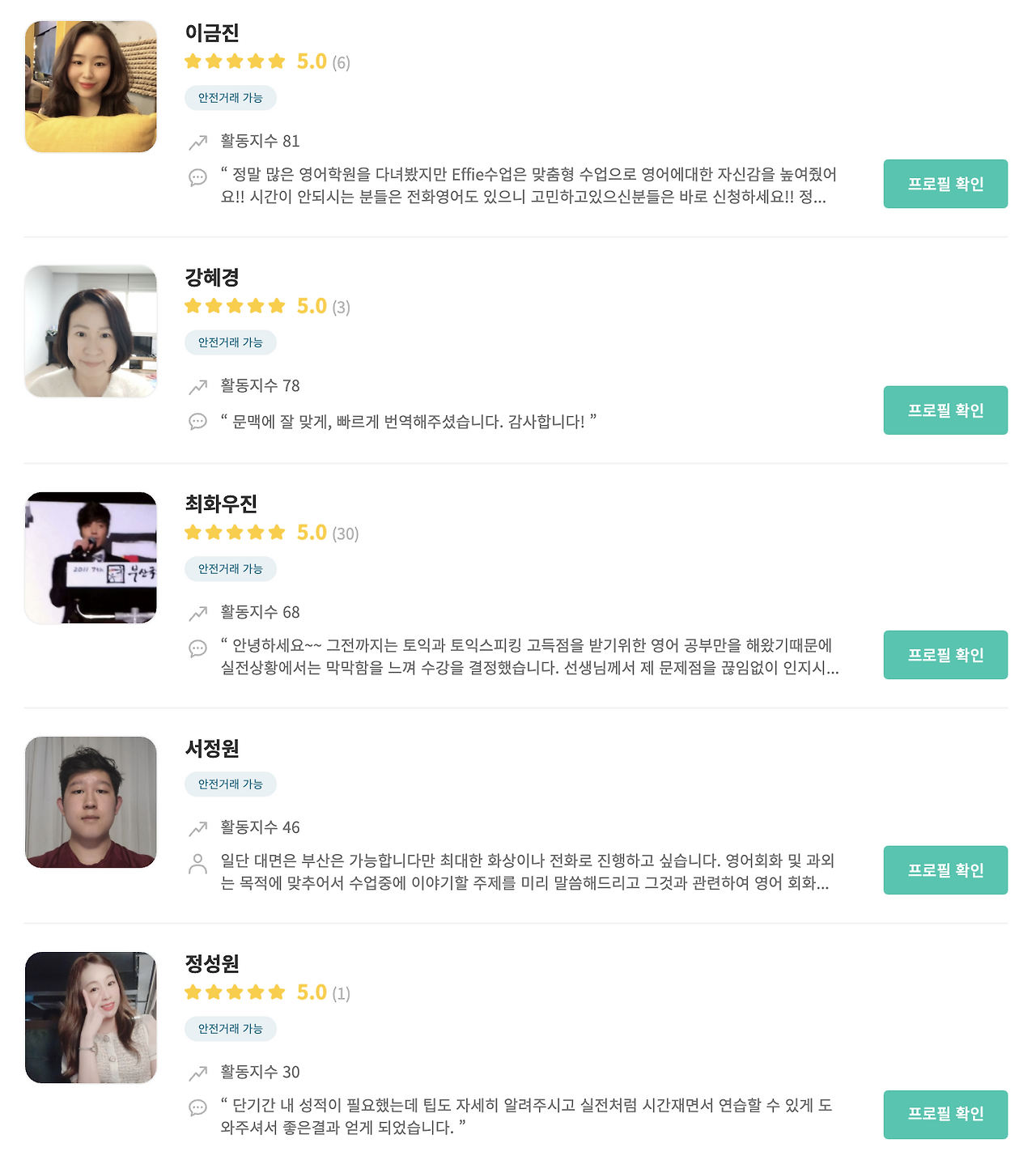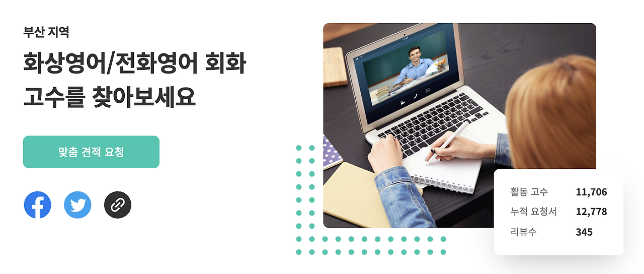 부산지역 전화영어를 진행하고 싶다면 아래 소개해드리는 부산 전화영어 고수님들에게 전화영어 요청서를 보내보세요.