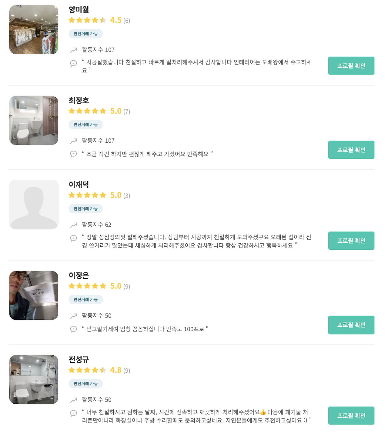 타일시공 전문가의 프로필, 비용 비교하고 결정할 수 있어요.