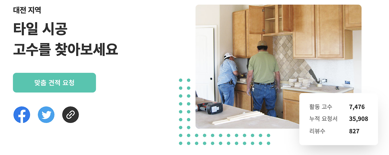 대전지역타일시공을 진행하고 싶다면 아래 소개해드리는 대전 타일시공 고수님들에게 타일시공 요청서를 보내보세요.
