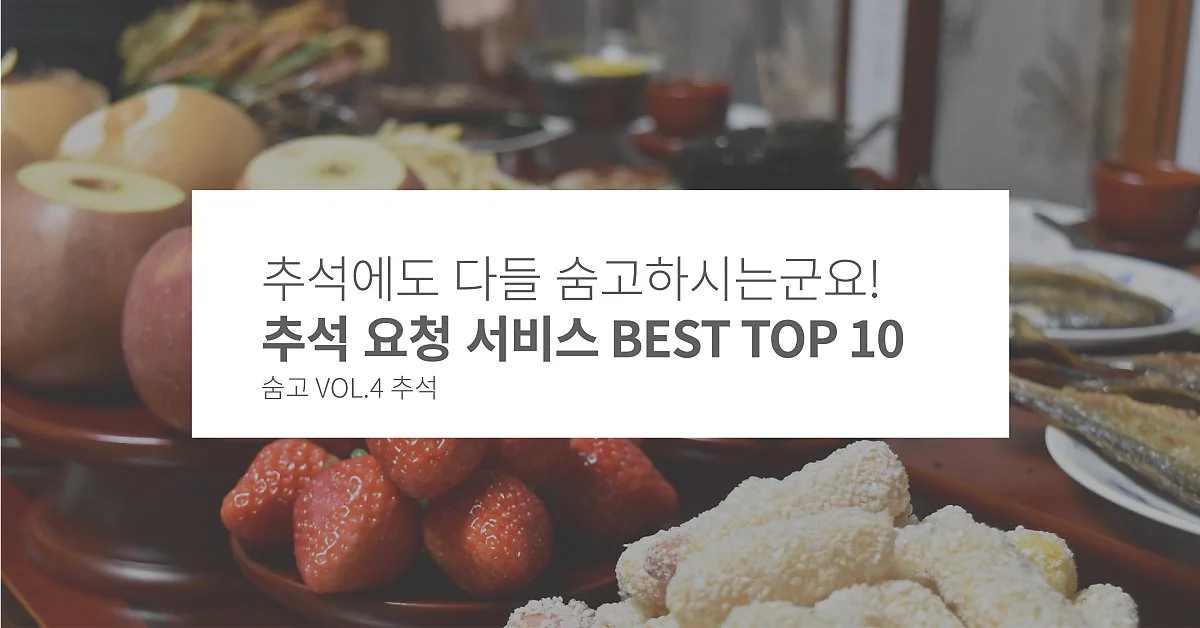다른 연도와 달리 이번 추석 정~말 긴데 다들 추석 계획 세우시고 계신가요? 숨은 고수팀도 숨고 이용자 여러분들이 어떤 추석 계획을 가지고 계신지 정말 궁금하답니다. 그런데 아직 특별한 계획이 없으시다고요? 다른 사람들은 어떻게 추석에 어떤 계획으로 하루하루를 보낼지 궁금하신가요? 그렇다면 지금 공개합니다! 추석 요청 서비스 BEST TOP 10! 지금 확인해볼까요?