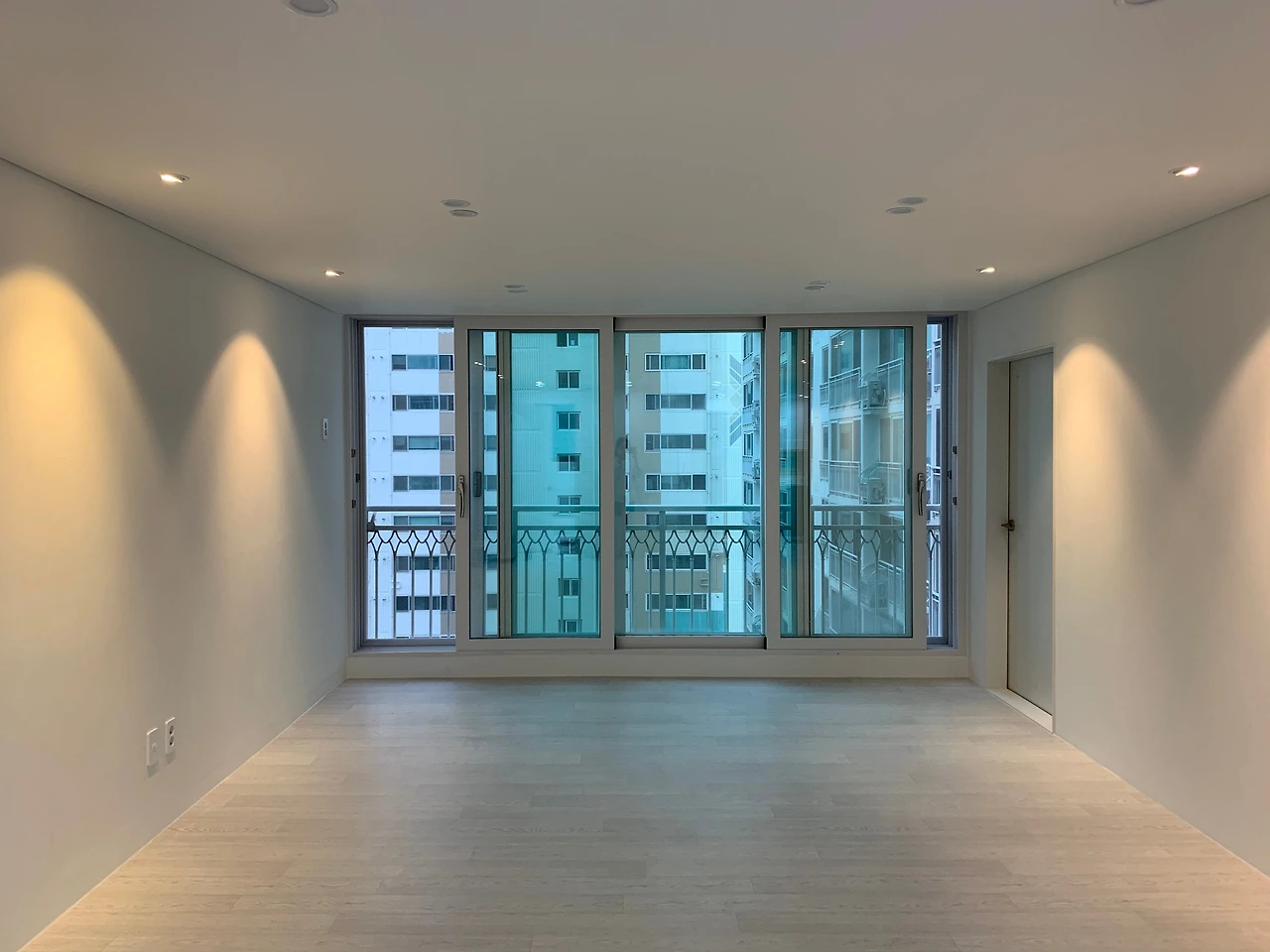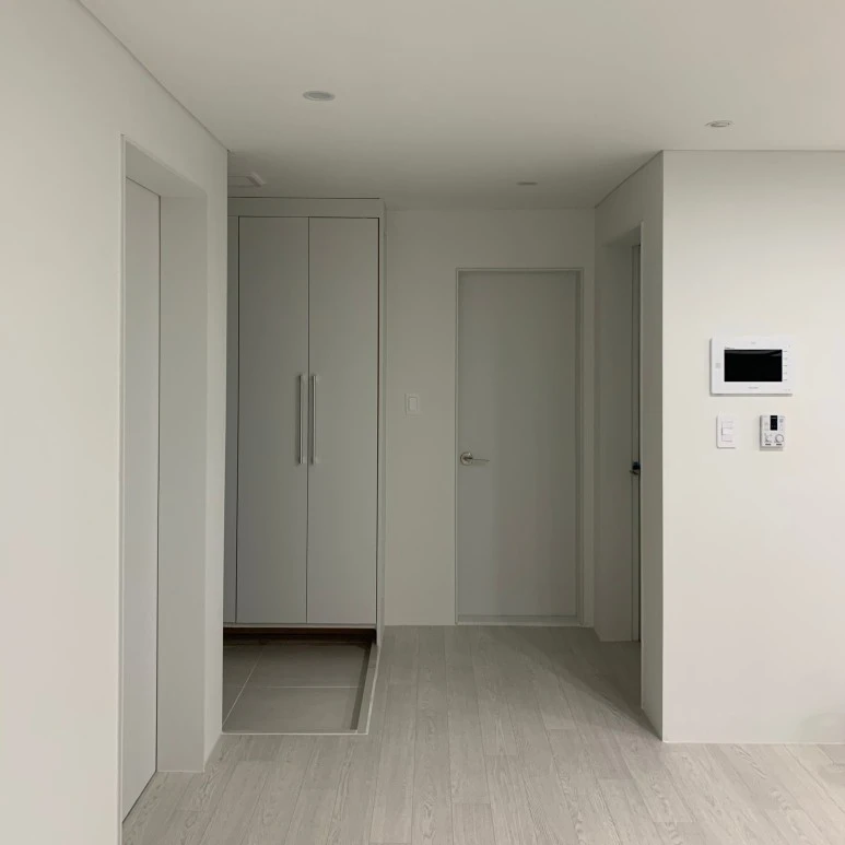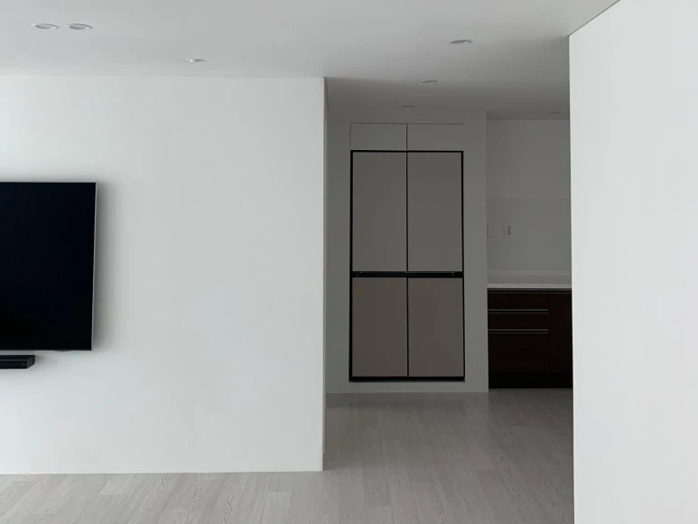 거실은 전체적으로 차분하고 깔끔한 분위기로 시공했어요. 등은 다운라이터로 했는데, 원하던대로 심플한 컨셉에 잘 어울리더라고요. 아직 가구는 들이지 않았지만, 빈 공간인데도 편안한 느낌이 나는 거실이라 너무 좋아요. 앞으로 거실에서 가장 많은 시간을 보낼텐데 마음에 쏙 들어서 다행이에요!