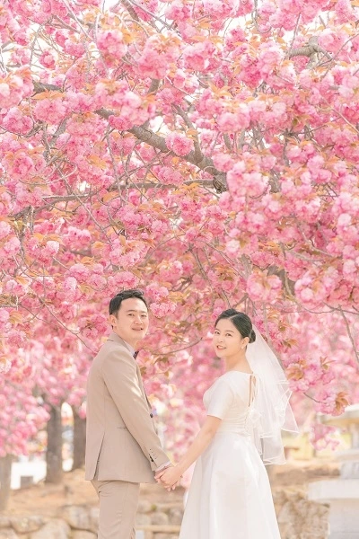 웨딩스냅은 역시 봄이죠. 경주 겹벚꽃 아래에서 촬영을 했는데 정말 만족합니다! 고수님이 부산에 계셨는데 경주까지 출장오시고, 촬영하는 내내 열정적으로 임해주셔서 만족스러운 사진이 많이 나왔습니다. 남자친구가 금방 지쳤는데 티도 안 나게 예쁜 모습만 담아주셨어요!