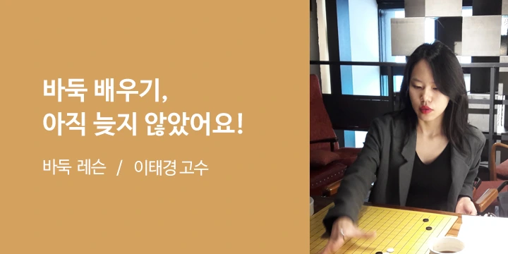 바둑 레슨 이태경 고수: 바둑을 처음 배우는 성인한테는 여유를 가지라고 말씀드리고 싶어요. 처음에 바둑을 배울 때 어떻게 둬야할지 모르는 막막함이 있어요. 점차 해소되는 부분이니 조급함을 버리시길 바래요. 너무 어렵게 느껴진다고 쉽게 포기하지 마세요. 그 뒤에는 엄청나게 매력적인 바둑의 세계가 기다리고 있답니다.