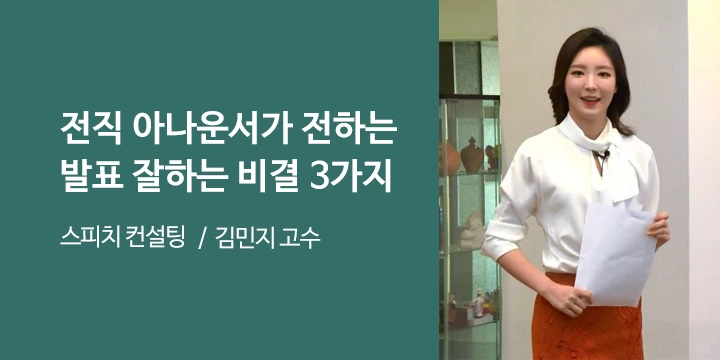 정말 내가 한 명의 앵커나 전문가가 되었다고 암시하고 그걸 의식하면 된답니다. 손 제스처나 억양, 어조, 속도, 강약조절 등을 신경쓰면서 쇼맨십을 부리면 되죠. 앵커 브리핑을 따라 연습해보는 것도 좋은 훈련방법이에요. 마인드가 달라지면 확실히 발표 능력과 자세도 달라져요.