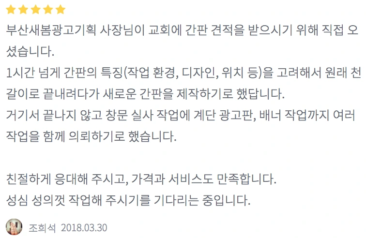 부산새봄광고기획 고수님의 이용자 후기를 기반으로 재구성하였습니다.