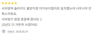 서재방에 슬라이드 붙받이장 아이보리컬러로 설치했는데 너무너무 만족스러워요.