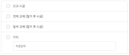 어찌보면 당연해서 가장 먼저 넣었어요. 장소와 면적에 따라 도배장판 비용은 달라지죠. 아파트, 단독주택, 오피스텔, 다가구, 빌라/연립주택 등 다양한 장소에 도배장판을 하시겠죠. 이에 따라 도배장판 작업 비용이 달라진답니다. 그리고 집 전체를 할 때와 거실, 안방, 아이방 등 한 곳만 장판을 바꿀 때의 도배장판 비용도 다르지 않을까요? 결국 시공에 필요한 장판의 cm단위로 자재값과 도배장판 비용이 결정되니까요.