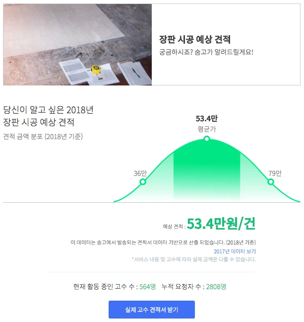 2018년 장판 시공 예상 견적 금액: 53.4만원/건