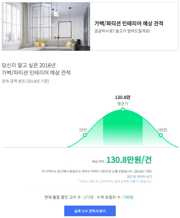 2018년 파티션 가벽 인테리어 예상 견적 금액: 130.8만원/건