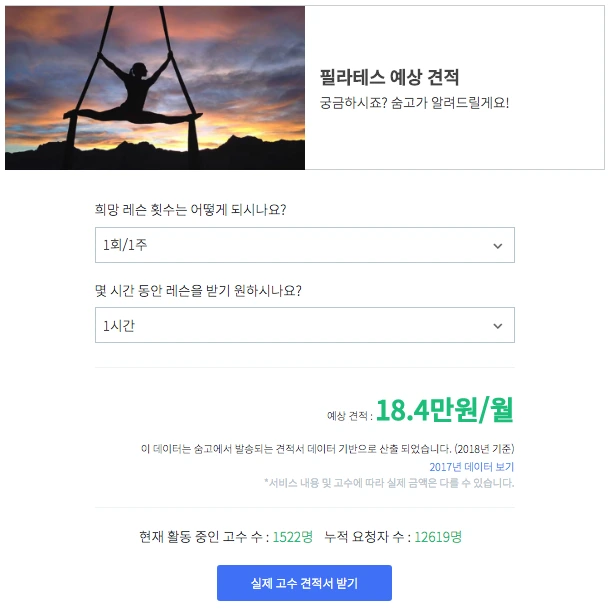 2018년 필라테스 예상 수강 비용: 18.4만원/월