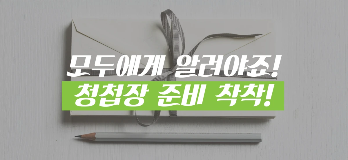 청첩장을 만들기 전에 일단 초대할 하객 리스트를 작성하여 수량을 정해야 해요! 예식 장소, 날짜와 시간이 정해지면 업체를 통해서 미리 준비하셔서 뽑아두는 것이 좋습니다. 청첩장의 경우 발송은 3~4주 전이 가장 적당하고, 하객 수보다 여유 있게 준비해서 나중에 편하답니다.
