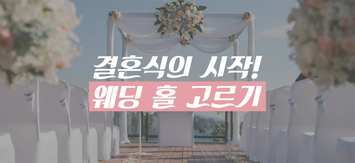 결혼 준비과정의 제일 중요한 부분은 바로 <웨딩홀 조사>에요! 일반 웨딩홀, 채플, 컨벤션, 호텔, 하우스 웨딩까지! 웨딩홀 스타일도 정말 다양하고요! 하객의 수, 하객 식대 예산에 따라서도 꼼꼼히 조건을 정해야 해요. 보통 3~4군데 후보를 잡아서 식대 가격부터 음식의 맛, 위치, 분위기까지 자세한 사항 등을 고려해요! 동시 예식/분리 예식인지, 뷔페/양식/일식 등 웨딩홀도 종류도 다양하거든요!