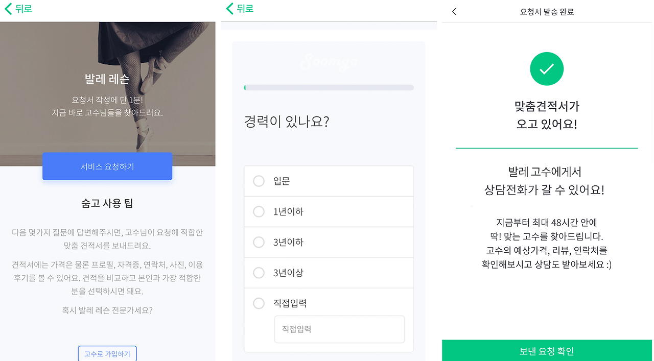 이제 숨고로 발레 레슨을 신청해볼까요?