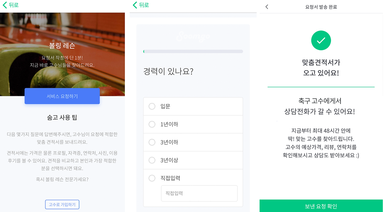 이제 숨고로 볼링 레슨을 신청해볼까요?