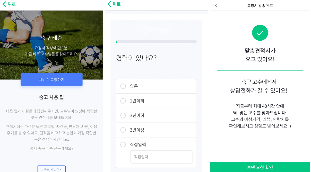 이제 숨고로 축구 레슨을 신청해볼까요?