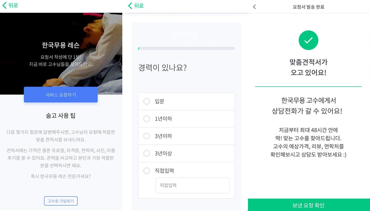 이제 숨고로 한국 무용 레슨을 신청해볼까요?