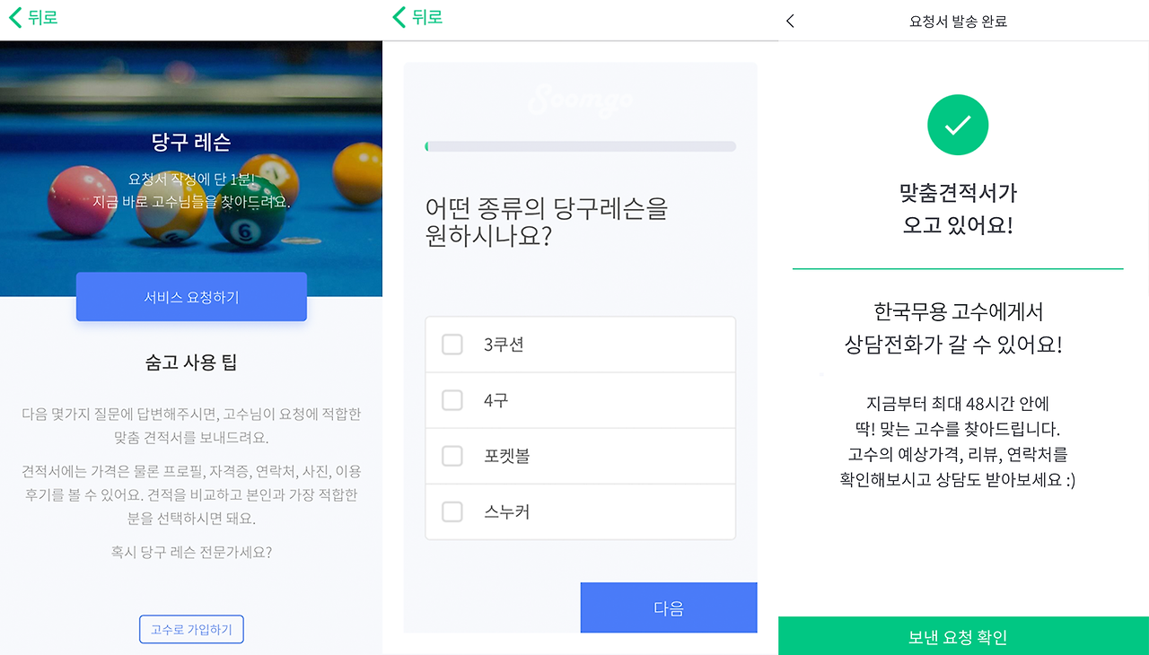 숨고의 당구 레슨 이용자들은 어떻게 배우고 있나요?
