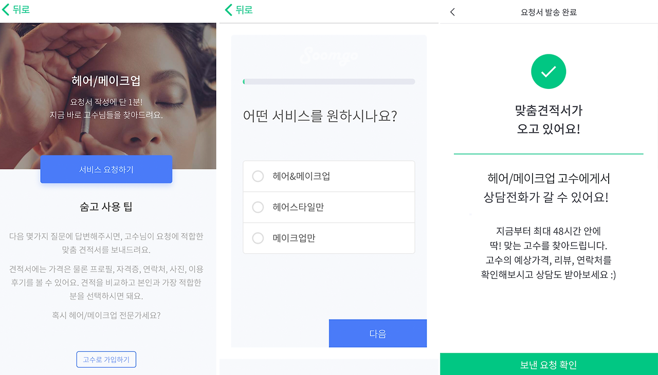 이제 숨고로 헤어/메이크업을 신청해볼까요?