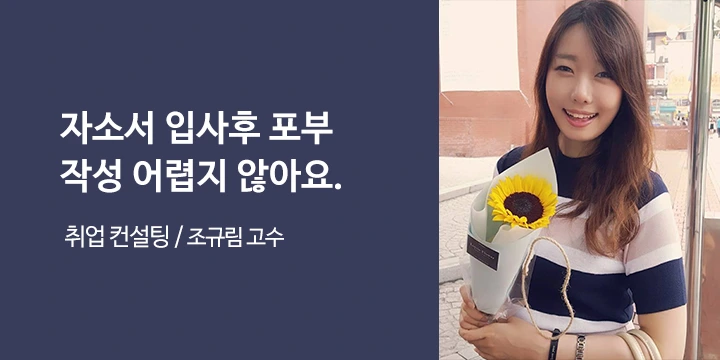 채용 공고 사이트에서 지원하려는 회사를 정했다면 회사에 대한 관심과 이해를 자소서에서 충분히 표현해야 한다. 회사의 상황과 맞춰 자신과 같은 인재를 뽑아야 하는 이유를 구체적인 근거를 통해서 설명해야 한다. 그리고 자신을 채용함으로 자신과 회사 둘 다 함께 성장할 수 있음을 드러내야 한다. 다양한 분야에서 활동하고 있는 취업 컨설팅 조규림 고수를 통해서 두 번째로 취업 자소서 항목 중 입사 후 포부 작성법을 알아보자.
