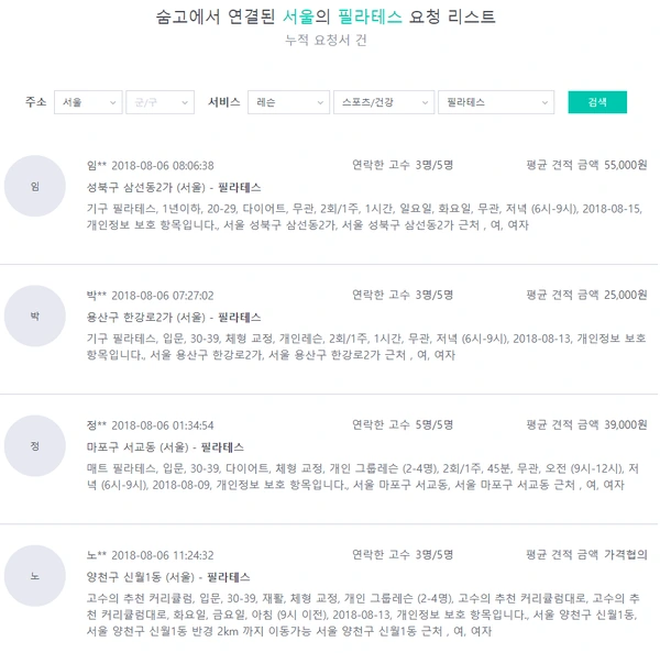 월 1,000건 이상의 필라테스 요청서가 등록되고 많은 필라테스 고수들이 이용하는 숨고는 알아보셨나요?