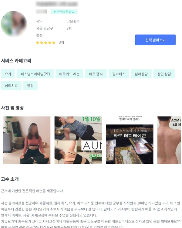 이미 숨고 요가 레슨 고수로 활동하고 계신