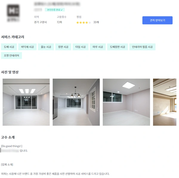 이미 숨고 도배장판시공 고수로 활동하고 계신