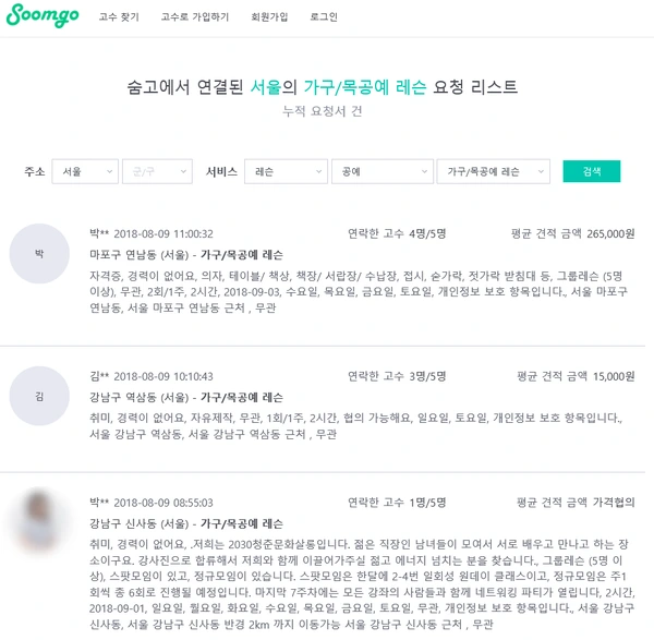 다른 공방에서 숨고를 소개시켜줘서 잘 쓰고 있습니다. 가격도 크게 부담 있는 가격이 아니고요. 저도 독립한 제자들에게 숨고 알려줬어요. 숨고는 마케팅을 대신 해주고, 진짜 요청자를 알려주는게 참 좋아요.