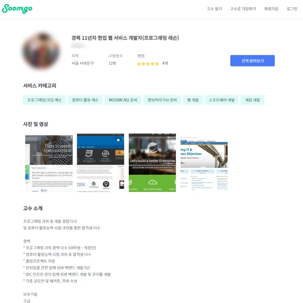 이미 숨고 프로그래밍/코딩 레슨 고수로 활동하고 계신