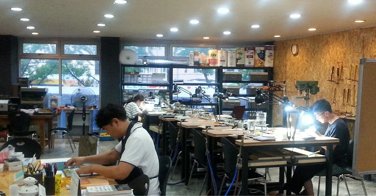 레슨을 듣고 싶어 하는 분들은 크게 두 경우로 나누어져요. 첫 번째는 금속공예학과나 산업디자인 학과를 전공한 학생들이 방학을 이용해서 배우러 많이와요. 두 번째는 20-30대 직장인이에요. 요즘은 30대 후반 40대 정도 되면 평생교육을 위해서 혹은 노년에 공방을 차리기 위해, 또 그밖에 창업을 위해서 다양한 이유로 미리 배우시는 분들이 많죠. 그 밖에도 금속공예에 관심이 있어서 금속공예 작품을 만들고 싶어서 등 레슨을 듣고 싶어 하시는 분들의 이유도 다양해요.