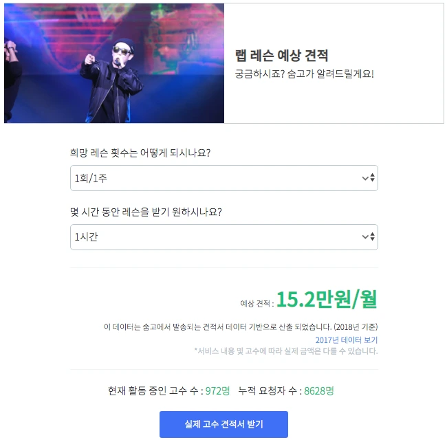 이제 숨고로 랩 레슨을 신청해볼까요?