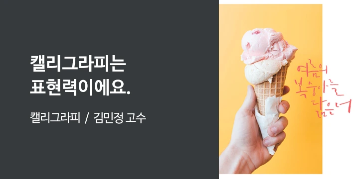 자신의 글씨체를 개발새발 혹은 악필이라고 생각하는가? 혹시나 악필이라는 이유로 캘리그래피 도전을 주저하고 있다면 캘리그라퍼로 활동 중인 김민정 고수의 얘기가 조금이라도 도움이 될 듯하다. 김민정 고수 역시 악필에 가깝기 때문이다.