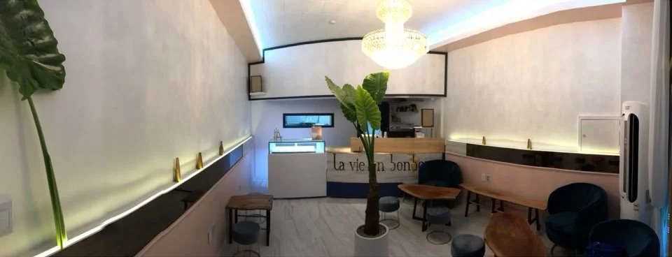 상업공간의 인테리어는 직원과 손님의 동선을 고려한 인테리어를 구축하는 게 가장 핵심이죠. 고객분께서는 마카롱을 직접 만드시고 판매하는 카페여서 작업 공간과 홀을 분할하는 공간을 구축하게 되었죠.