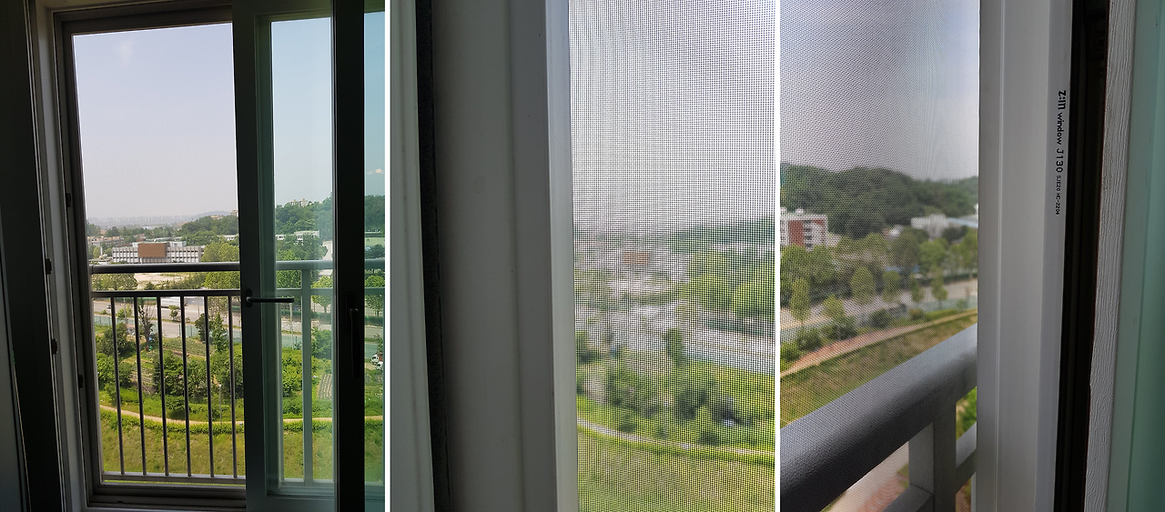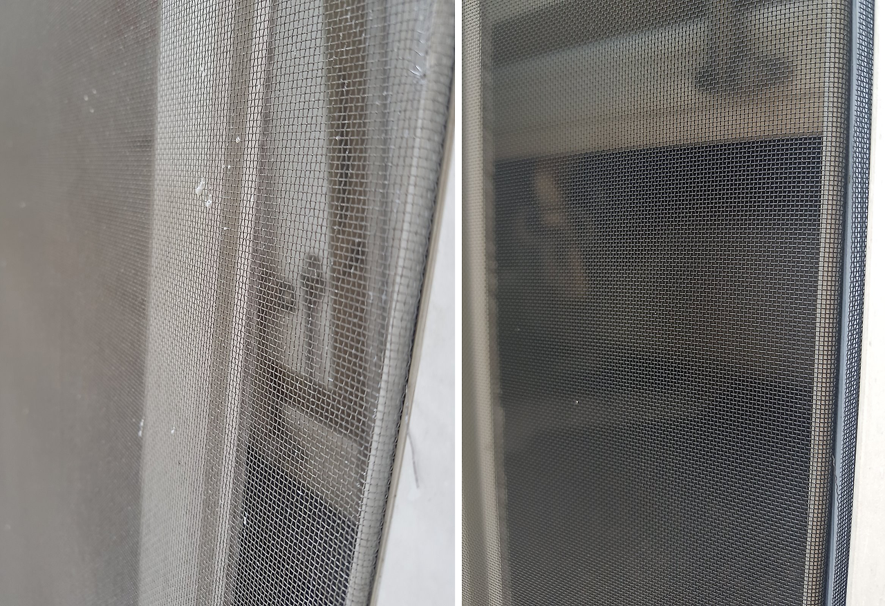 오래된 알루미늄망은 망자체의 공극(빈틈)이 큽니다. 그 틈을 비집고 벌레가 들어오는 경우가 많아요. 또한, 노후된 망이 빗물을 맞아 부식이 되면 알루미늄 철가루가 날리게 되어 기관지에도 좋지 않을뿐더러, 미세먼지에는 무방비입니다.