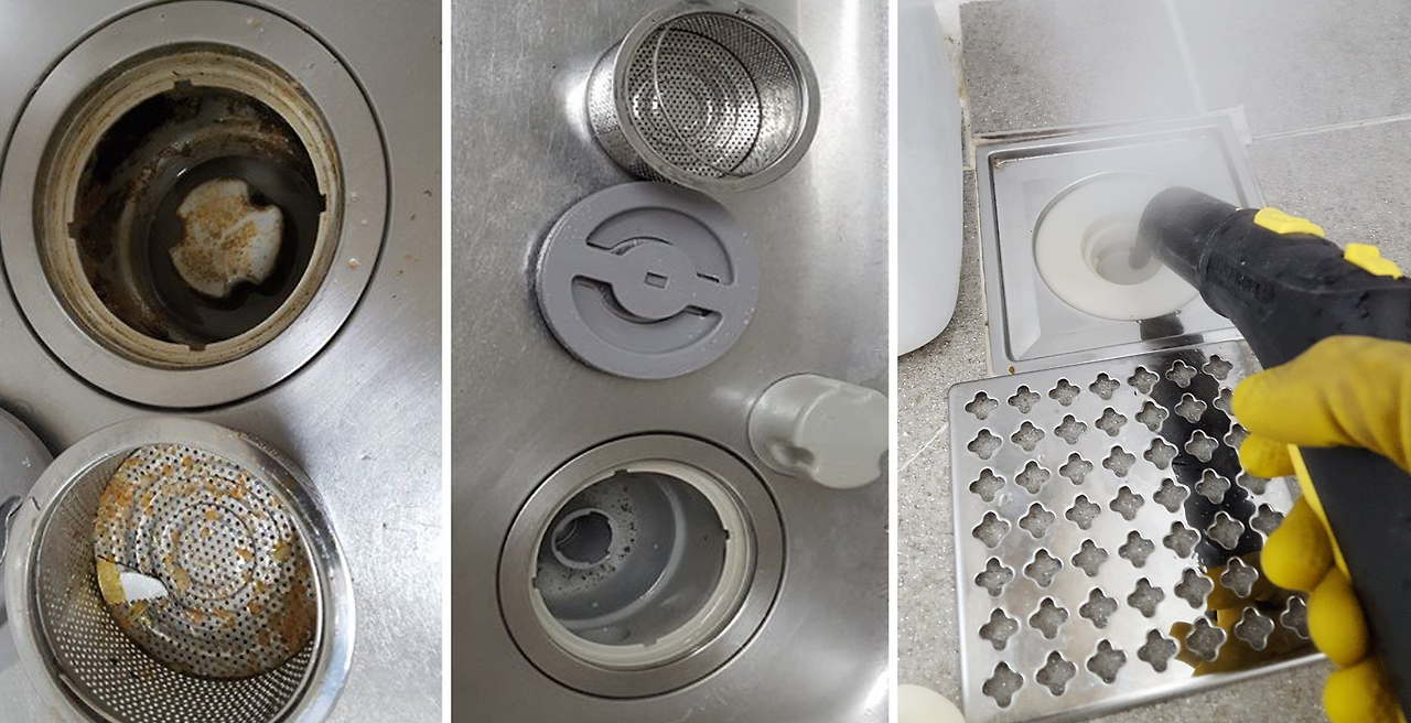 배수구에는 오염이 심해서 세척을 마친 후 고온 스팀 청소기를 살균 청소를 합니다. 일반 가정집에서 배수구를 쉽게 청소하지 못해서 업체에서만 해줄 수 있는 혜택이라고 할 수 있죠.