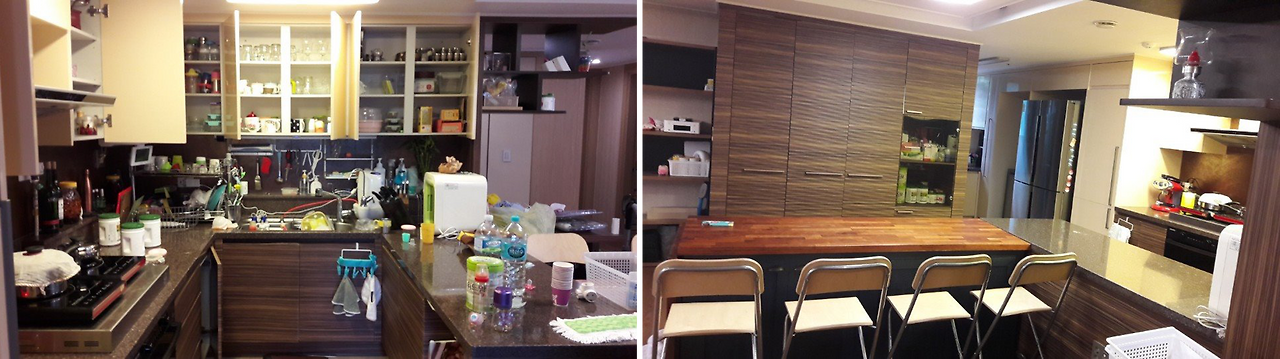 집은 52평의 넓은 아파트여서 창고가 있고 수납공간이 많았어요. 거실의 여유 있는 공간 활용을 위해 최소한의 가구를 빼놓고는 전부 정돈을 실시했답니다.