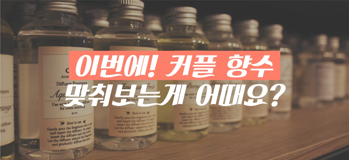서로의 향기를 기억하고 나눈다는것! 커플들의 낭만적인 교감을 위한 실내 이색 데이트 어때요? 바로 낭만적인 커플들을 위한 커플 향수 만들기! 서로 같은 향수를 구매해서 사용할수도 있지만! 이번 실내 데이트를 통해서 의미있는 시간을 보낼수도 있잖아요!
