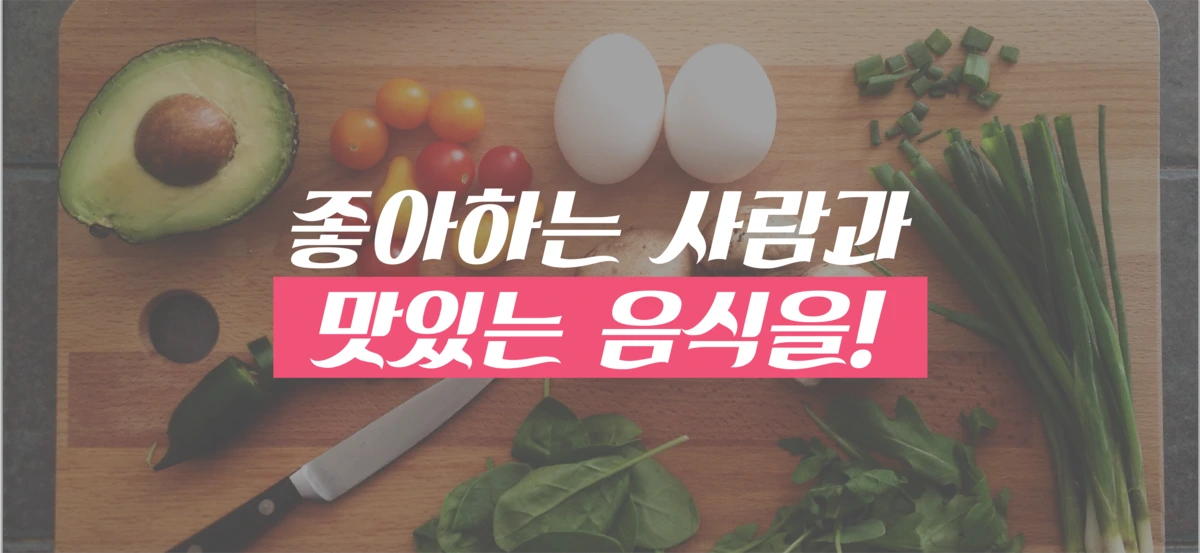 사랑하는 연인과 맛있는 음식을 먹는것! 이것보다 더 의미있고 행복한 일이 있을까요? 좋아하는 연인과 맛있는 음식이 먹고 싶은 건 너무 당연하죠! 그러나 이제 인터넷에서 맛집만 검색하던 과거는 잊으세요! 맛있는 음식을 직접만들어 먹을수도 있잖아요!