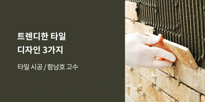 숨고의 함남호 고수님은 타일을 직접 유통 및 판매를 진행하는 업체를 운영하고 있습니다. 타일의 종류와 특징에 대해서 전문적인 지식을 지니고 계시죠. 고수님께서는 가장 매출이 높고 소비자들이 선호하는 트렌디한 타일 디자인 3가지에 대해서 설명해주셨답니다.