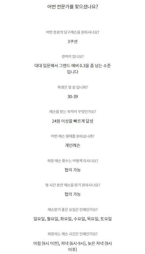 Q. 어떤 이유로 당구 레슨을 요청하게 되셨나요?