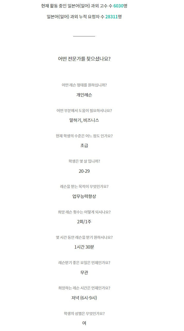 Q. 어떤 이유로 일본어 과외를 요청하게 되셨나요?
