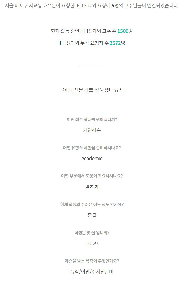 Q. 어떤 이유로 아이엘츠 과외를 요청하게 되셨나요?