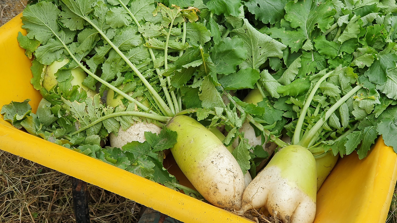 이 밭에서 자연 농법으로 기른 제철 채소를 팔고 있었다.