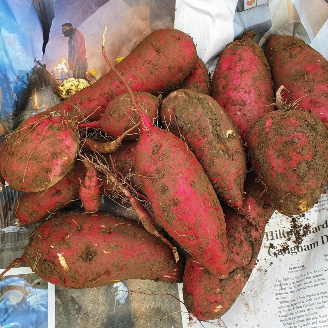 다음 주 최종 수확이라는데 두둑이 길기도 하고 고구마 무게가 꽤 나가니까 고구마 줄기를 걷어내고 고구마를 일부 수확했다.
