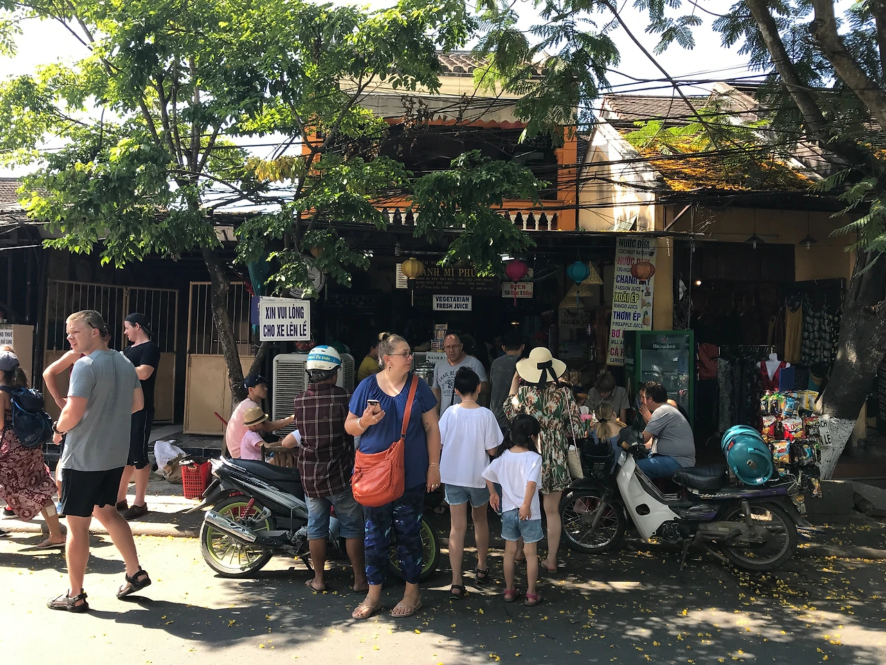 도시를 떠나기까지는 여유가 있어, 공원 같은 리조트의 정원으로 들어섰다. 사이공 커피 화이트 두 잔을 주문하니, 선풍기가 앞으로 등장한다. 새들이 지저귀고, 나른한 오후 햇살이 나무 그늘 사이로 내려온다. 평화로운 오후다. 졸음을 물리려 하지만, 쉽지는 않다. 그냥 들어온 곳인데 참 만족스러운 곳이다. 단돈 3천 원에 이 모든 탁월한 옵션을 가질 수 있다는 게 좋았다. 언제 또 올 수 있을까 싶은 마음으로 올드타운의 더위를 감당한다. 투본강도 다시 보고, 예쁜 상점가들도 둘러본다. 그늘 아래에서 지나가는 씨클로와 그 안에서 자신의 여행을 누리는 사람들의 표정도 마주한다. 호이안 로스터리에서 카페 쓰어다를 주문해 천천히 방법에 따라 한 모금씩 삼킨다. 연유는 정말 사랑이다. 엄마는 오로지 하나인 폰을 들고 거리를 담으러 나섰다. 그냥 나는 커다란 창 밖에서 펼쳐지는 흥정을 구경하고, 누군가들의 배경인물이 되어주기도 한다. 그늘이 점점 길어지고, 또 다른 도시로 향해야 하는 시간이 되었다. 3대 반미 중 하나를 포장해서, 신투어리스트 버스를 타고 미처 가보지 못한 호이안의 밤의 풍경들을 스쳐 보낸다.