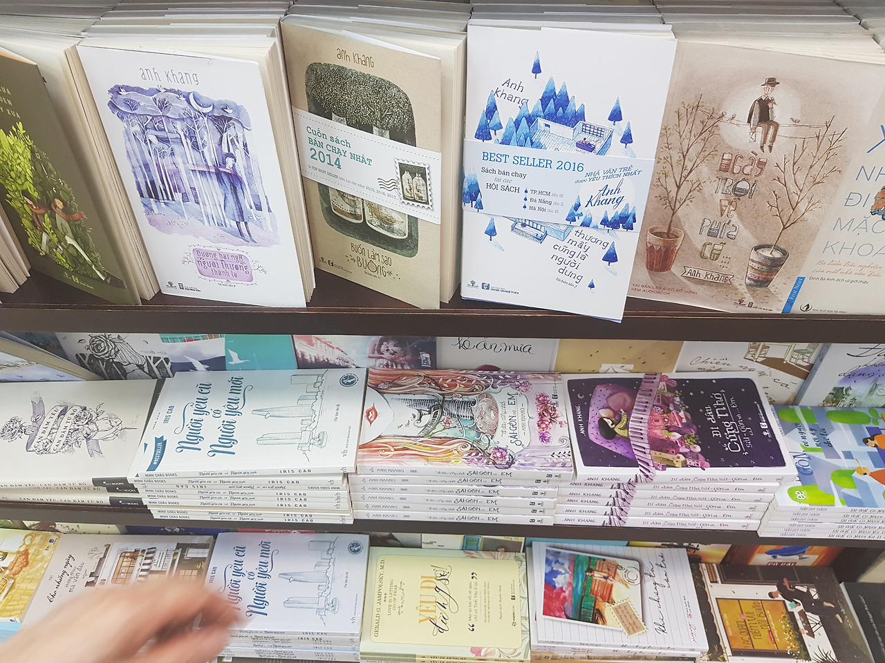 성당 가는 길에 cafe apartments 가 보인다. 오래된 아파트에 트렌디한 카페들과 공방들이 입점된 곳으로 호찌민에 오면 꼭 가보고 싶던 곳 중 하나였는데, 우선 봐야 하는 곳들에 막상 들어가 보지는 못했다. 일층의 서점에 살짝 들러, 더위만 잠시 식힌다. 소설 표지들이 동화적인 느낌들이 많아서 한 장 담았다. 아 이 나라도 영어교재는 참 많더이다.